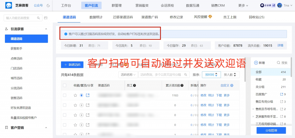 但是,调休制度实施后,如何确保客户对接工作的连续性成为了一个问题。这时,芝麻微客系统的渠道活码功能提供了一个解决方案。