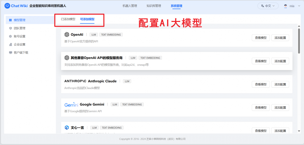 ChatWiki 支持全球 20 多种主流模型,你可以根据自己的喜好和需求选择模型。